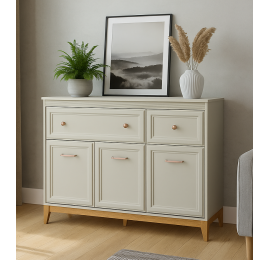 Komoda Windsor – klasyczna elegancja w odcieniu kaszmiru Szukasz mebla, który połączy ponadczasowy styl z funkcjonalnością? Komoda Windsor to kwintesencja elegancji i wyrafinowanego rzemiosła. Jej subtelny odcień kaszmiru nadaje wnętrzu lekkości i harmonii, a dekoracyjne listwy MDF na frontach podkreślają klasyczny charakter mebla.