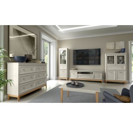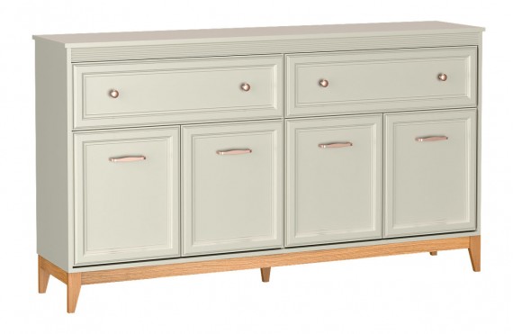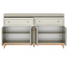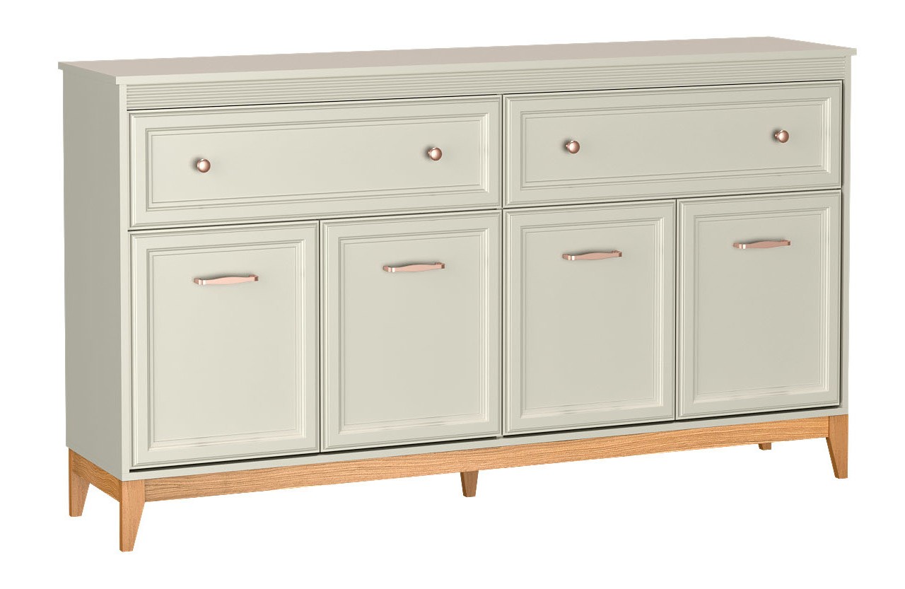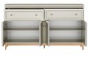 Windsor-2 to komoda, która zachwyca klasycznym designem i nowoczesną wygodą użytkowania. Jej subtelny odcień kaszmiru, w połączeniu z elementami w kolorze dębu naturalnego, tworzy harmonijną kompozycję, która doskonale wpisuje się zarówno w tradycyjne, jak i nowoczesne wnętrza.
