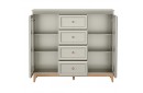 Klasyczny design w nowoczesnym wydaniu – frezowane fronty, miedziane uchwyty i ponadczasowa forma czynią z komody elegancki element każdej aranżacji