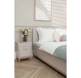 - Stylowe połączenie kaszmiru i dębu naturalnego – ciepła kolorystyka i naturalne drewno tworzą elegancką, a zarazem przytulną kompozycję