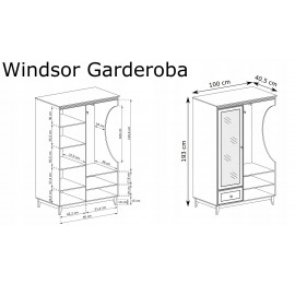 Wielofunkcyjna konstrukcja garderoby Windsor została zaprojektowana z myślą o maksymalnym wykorzystaniu przestrzeni. Szafa przedpokojowa wyposażona jest w:Zastosowanie – Gdzie Sprawdzi Się Garderoba Windsor?