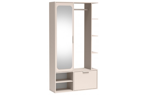 - NALA oferuje wszystko, czego potrzebujesz na co dzień – przestronny drążek na wieszaki pozwala wygodnie przechowywać płaszcze, kurtki i marynarki. Pojemne półki na buty mieszczą ulubione obuwie, a otwarte półki z prawej strony idealnie sprawdzą się do ekspozycji dekoracji, przechowywania torebek czy koszyków z drobiazgami.